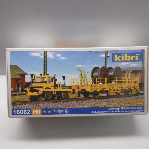 KIBRI 16062 TWO-WAY UNIMOG WITH PUSH-PULL FRAME AND LOW SIDE CAR FOR CATENARY CONSTRUCTION