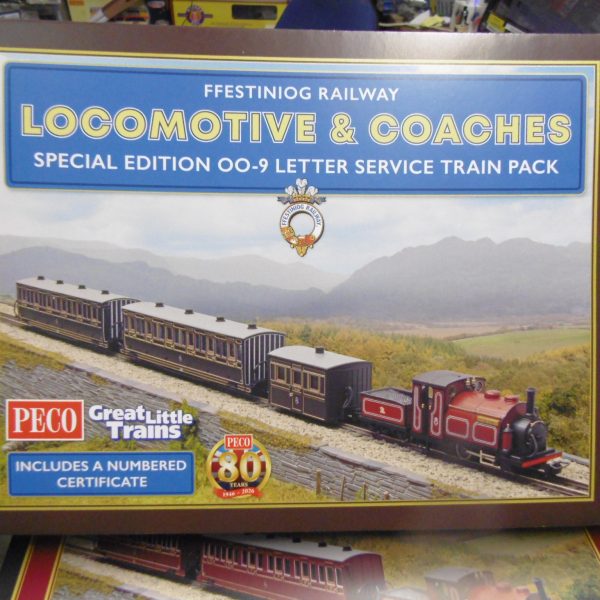 Peco GR1006 FFestiniog Railway Locomotive & Coaches Special Edition 00-9 Letter Service Train Pack